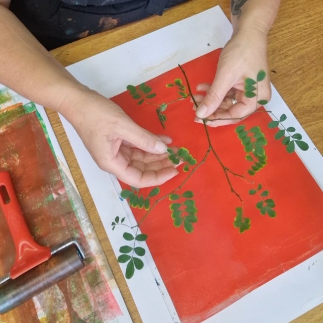 Annick et Johana vous accompagnent dans l’utilisation de la plaque d'impression en gel, une technique d’impression à la peinture acrylique, et dans la réalisation de petits objets.